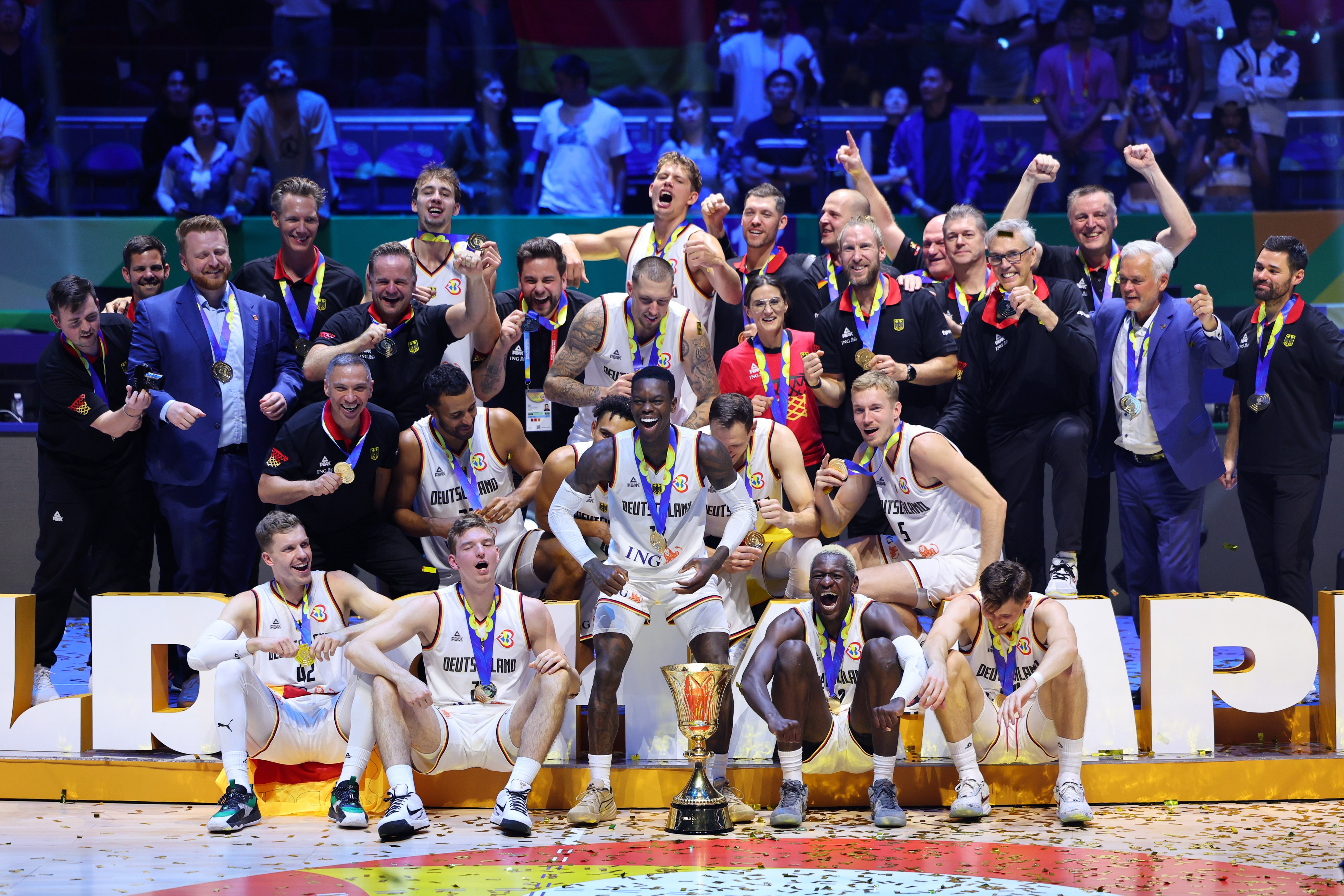 9月10日讯 德国篮协更新社媒晒出了前年勇夺世界杯冠军的照片庆祝两周年,并配文:“两年前,这个童话成真了。我们在马尼拉加冕为世界冠军。从那时起,许多事情都发生了变化,但有一件事不变:对“更多胜利”的渴望 👊。”